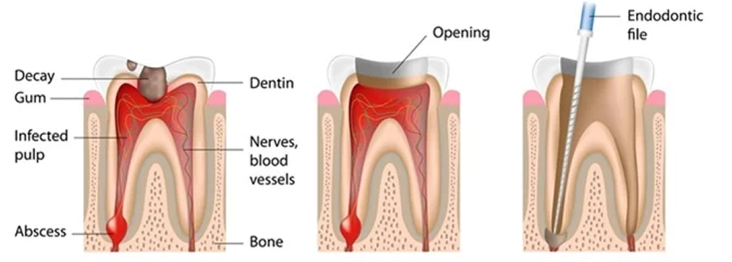 Root Canal Treatment (RCT or endodontics) is needed when blood or nerve supply of the tooth (known as pulp of tooth) is infected because of decay (cavity) or trauma.